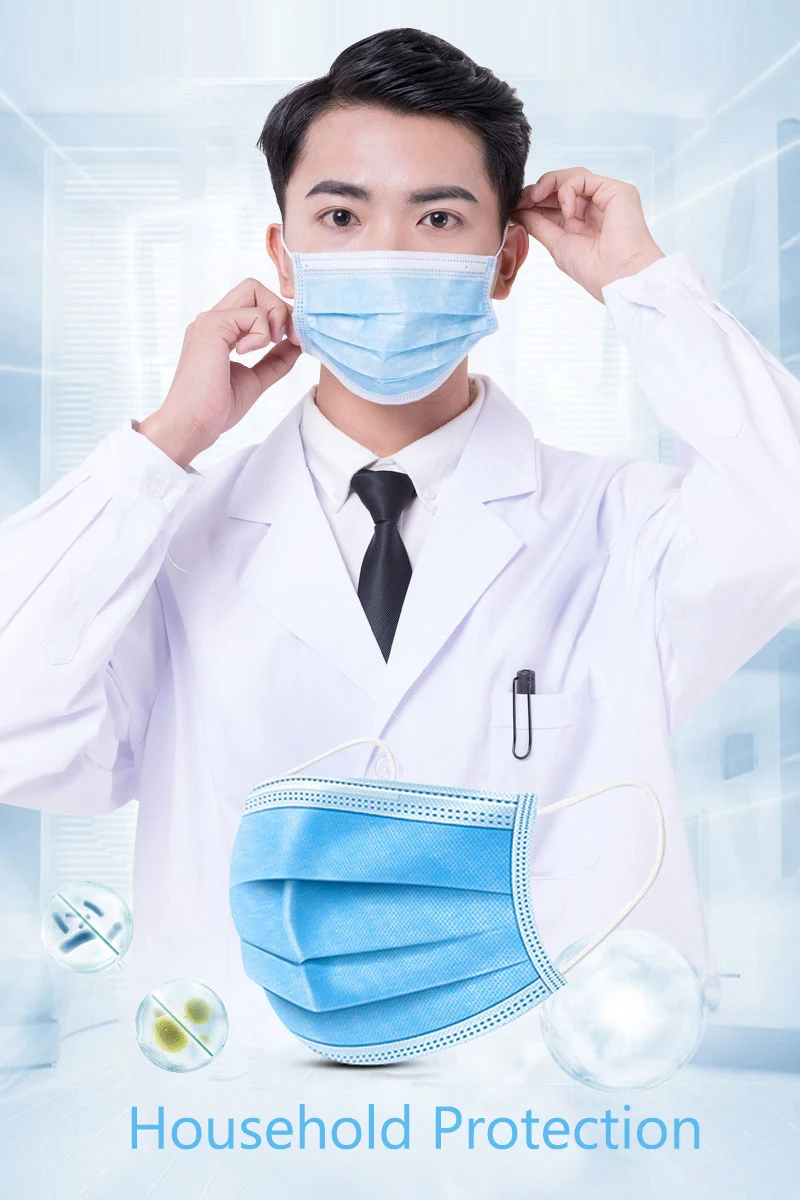 1. 100% brand new and high quality. 2. Medical grade disposable quality face mouth mask, made of 3 ply material. The outer material is Waterproof non-woven fabric which can effectively prevent dust and droplets, the middle layer material is melt-blown material which can effectively filter viruses, the inner material Is soft non-woven fabric which can absorb the moisture of body's expiration to keep our skin dry. 3. The aluminum strip on the bridge of the nose can be adjustable to fit your face. The elastic ear loop is easy to wear and no pressure to the ears. 4. Comfortable and breathable design can prevent automobile exhaust, pollen, odor, viruses, allergies, contaminants, bacteria etc.